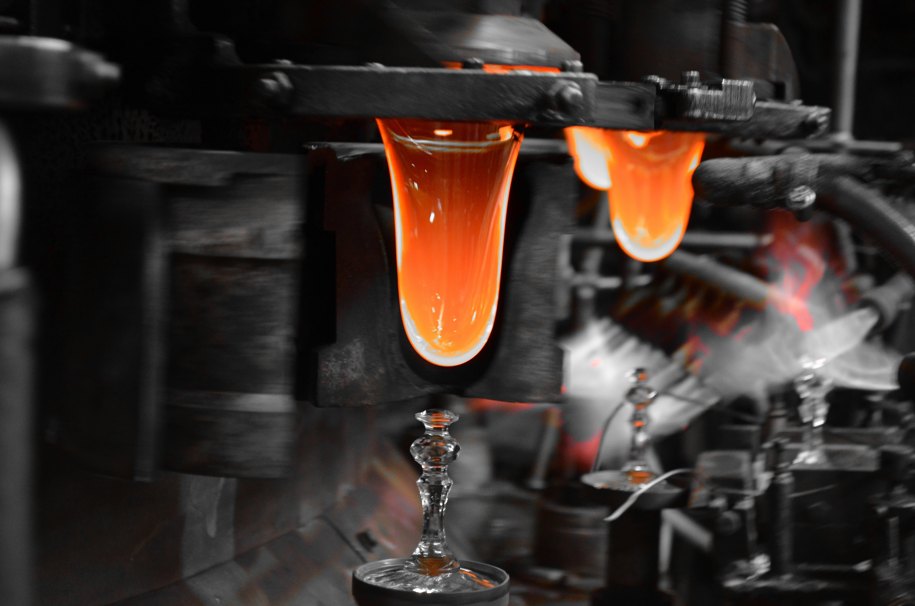 Zdjęcie wykonane na terenie Huty Szkła w Zawierciu. Przedstawia moment wypływania ciekłego szkła, które lada moment zostanie zaciśnięte przez formę i zastygnie. W rezultacie powstanie kieliszek. To co dostrzegam to możliwość odkształcania i nadawania nowego znaczenia materii w innym stanie skupienia. Właściwości topologiczne się nie zmienią.