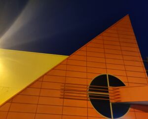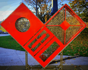 Kiedyś krzywiki, czyli szablony do rysowania linii krzywych, były na wyposażeniu piórnika każdego ucznia matematyki. Ten mega krzywik posiada dodatkowo dzwonnicę 🙂
