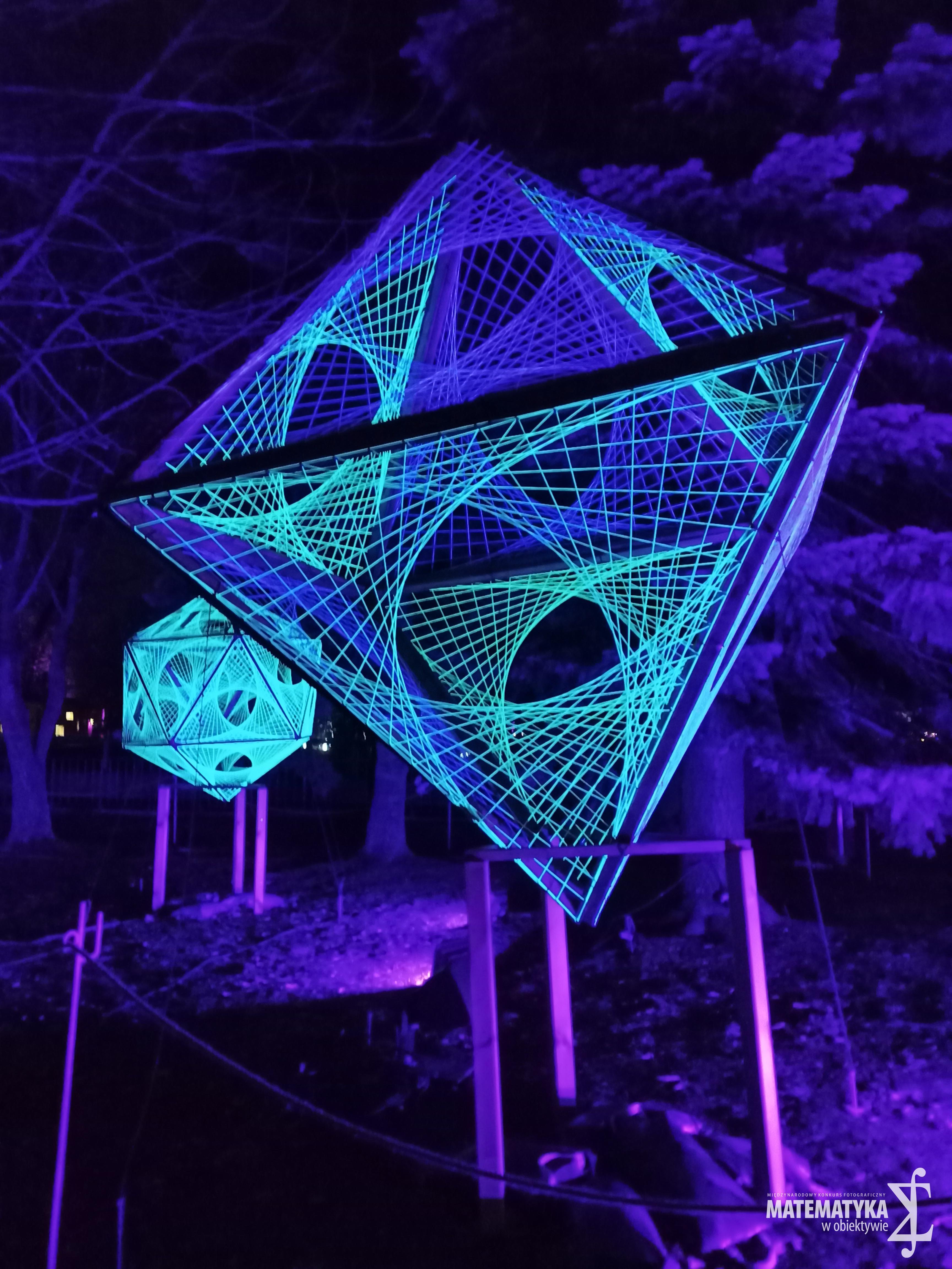Świetliste bryły w mrocznym lesie